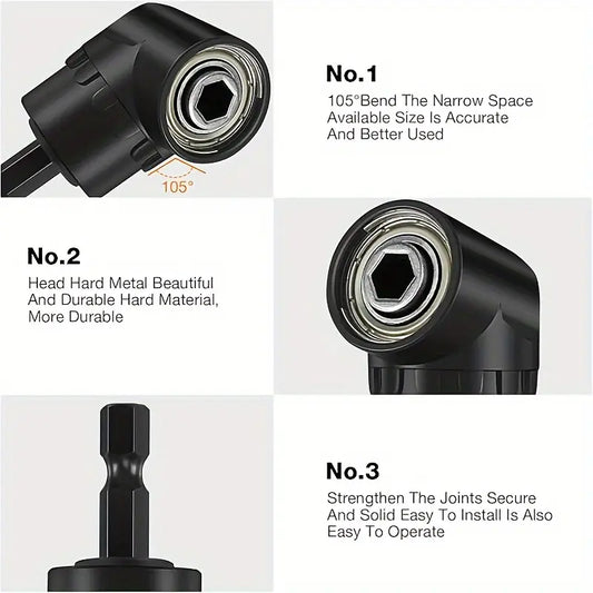 Complete Tool Kit: 3 Rotatable Socket Adapters + 2 Angle Drill Adapters + 90° Bevel Bit